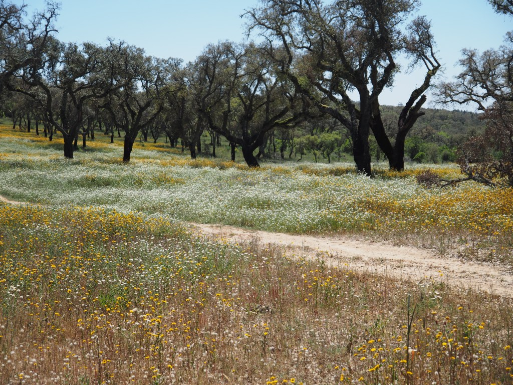 We walk through ancient cork oaks and wild olive groves, the ground covered with a tapestry of Spring flowers, the air scented with chamomile and hot pines, the only sound the cuckoo’s cry.