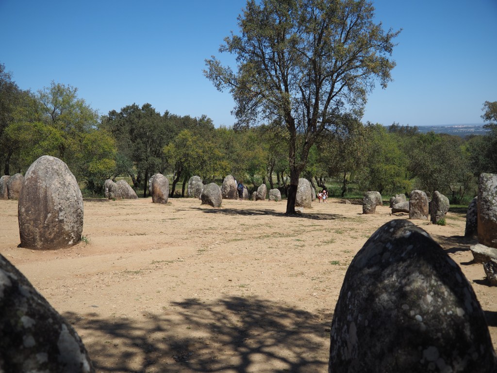 Before we leave Évora we have to visit the Megaliths that stand 15 kilometres east of the town in Cromeleque dos Almondres. We decide to walk the 4 kilometres from the parking in Almondres village to the Megalithic stone circle. And what a treat it is.