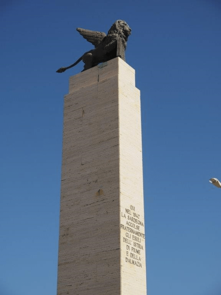 Venice’s emblem, St. Mark’s lion, stands on a plinth overlooking the sea, a memorial to the post WWII Istrian-Dalmatian exodus.