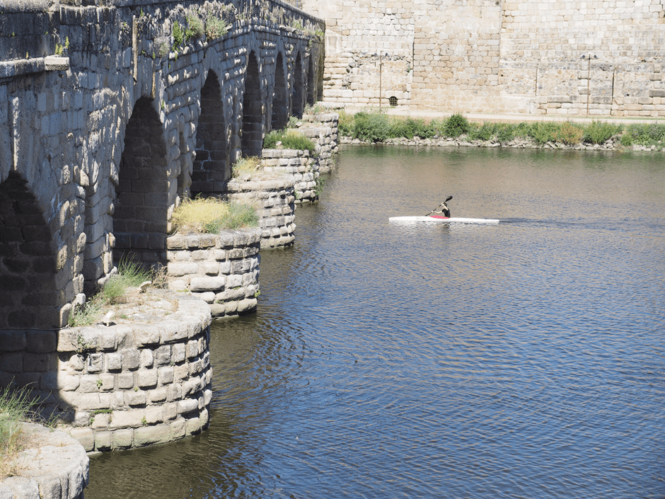The Roman bridge spans the River Guadiana. A green oasis of a park lines its banks, the river’s two arms running around an island in the centre. An elegant white suspension bridge is a wonderful contrast to the antiquity.