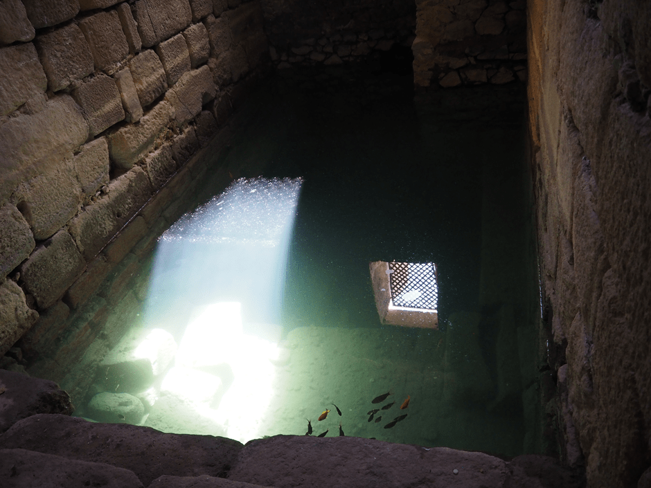 The Alcazabar’s highlight for me though is the underground cistern, the impressive engineering of the stout tunnel down to the water at the bottom, complete with goldfish, the light from a window reflecting in the green pond. Beasts of burden carried the water up from here.