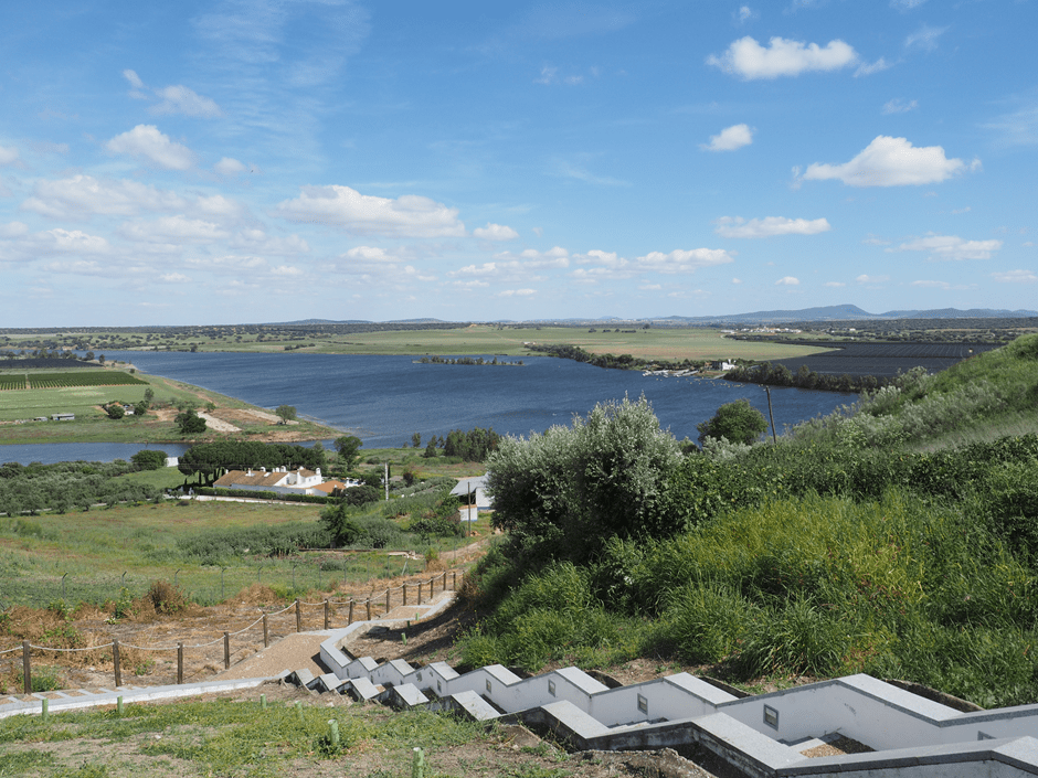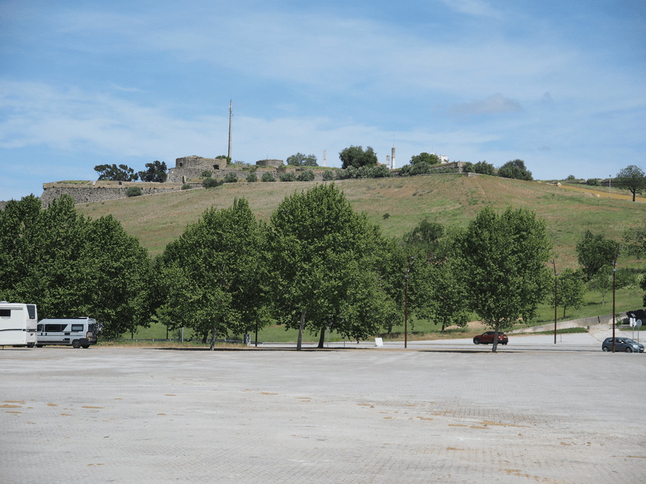 The first thing we do on crossing the border to Portugal from Spain’s Badajoz is take a wrong turning, as usual, on the ring road and end up in a camper stop on the outskirts of Elvas, a Unesco world heritage site. We were heading for the mountain road to Juromenha where there’s an ancient fort guarding the border between Spain and Portugal and the great Guadiana River which marks it.