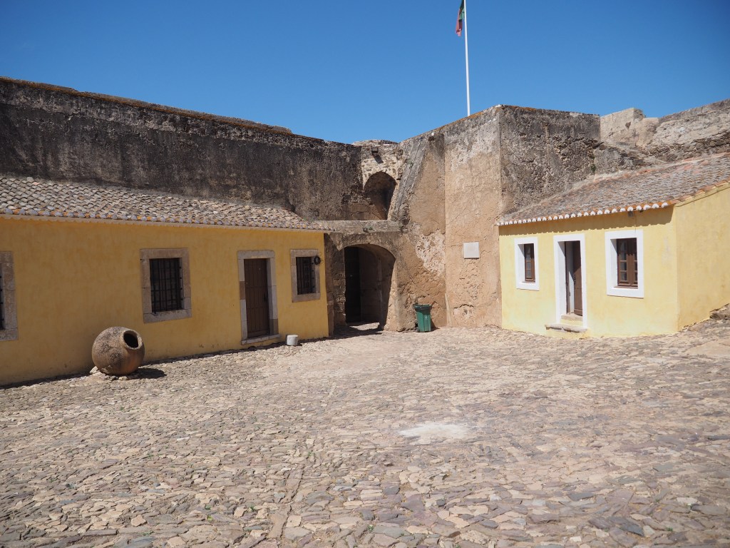 The 1755 earthquake in Portugal’s Atlantic destroyed most buildings in Castro Marim, but the fort, although damaged, survived. There’s a moment of serendipity for us too. Only two years ago, we stood in Timoleague in West Cork and read about how the tsunami from the same earthquake silted up its harbour.