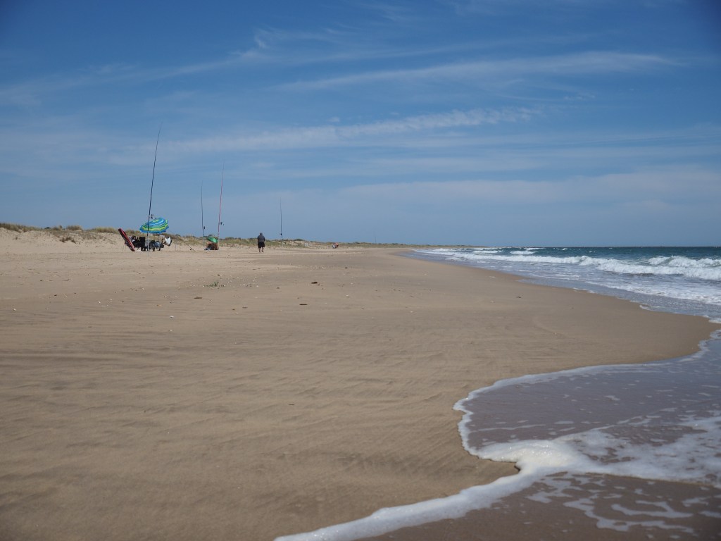 A spot of sea air is needed so we drive off to Monte Gordo, the fine, sandy beach stretching for miles out to where the Guadiana River finally empties out into the Atlantic Ocean. Backing the beach is a natural park of pine forests and sand-dunes, home to rare chameleons.