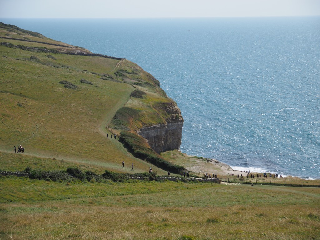 Standing on Dancing Ledge we survey the hidden cove below and the blue sea. I’m intrigued by the name. One story says it’s named after the high tide that seems to dance over the ledge; the other that it’s just the right size for a ball-room. I favour the second option. Imagine dancing a wild hornpipe on a mud-rock dancefloor suspended above the sea.