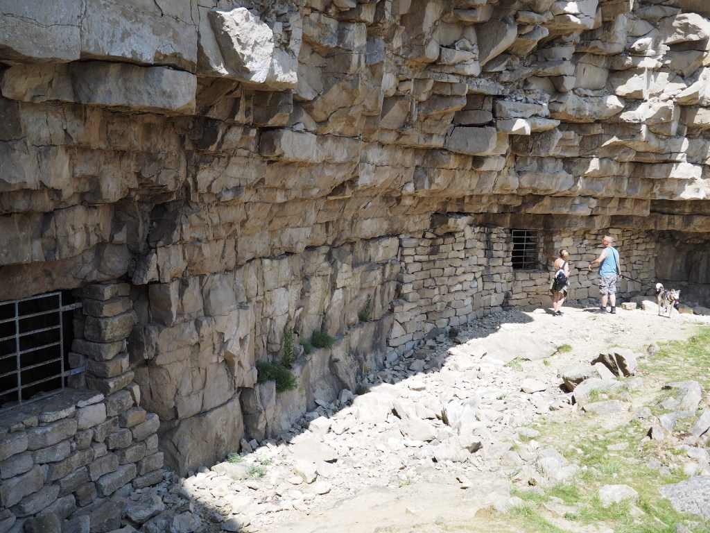 Scrambling down past a stream of tired, happy teenagers who have just finished coasteering, we amble toward the troglodytic caves cut into the rock.