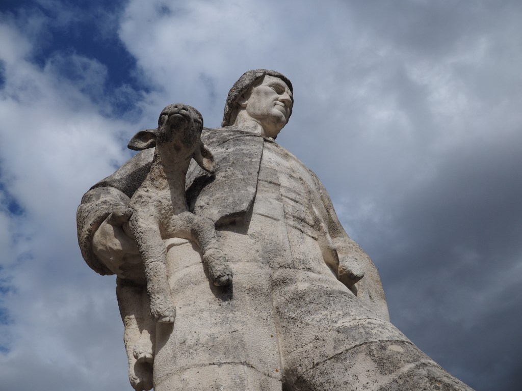 Our first stop has to be the giant limestone monument of a shepherd beside the campsite, a memorial to all those in the area.