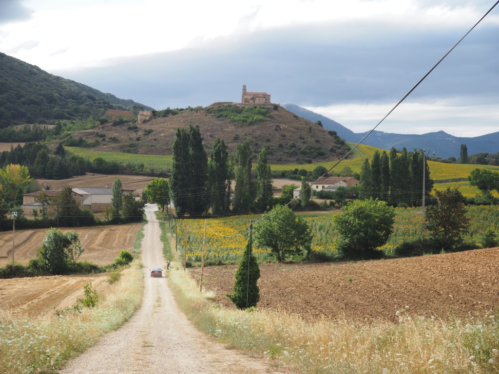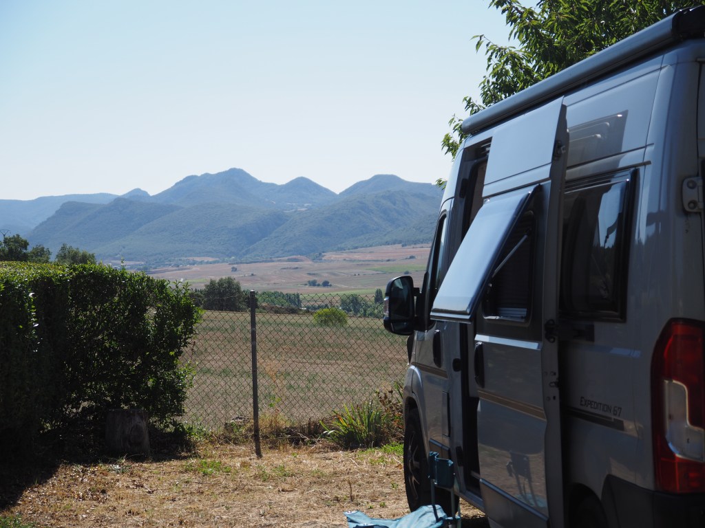 The village of Ameyugo sits just off the AP1 Motorway to Burgos, on the N1. The only reason we stop is because there’s a camping sign on my book map. The sun is shining on the Obarenes mountain range. Camping Monumento al Pastor sits outside the village.