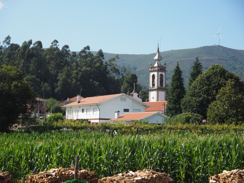 The manor house is handsome in Covas, though its high wall and stone cross above the arched door tricks me into thinking it’s a cemetery. The granite wall, the arched doorway, the open windows in the garden’s perimeter stone wall revealing the pine trees within.