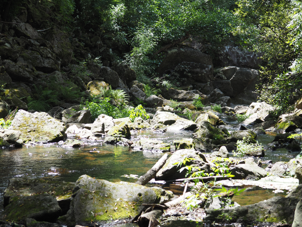 I follow, only to freeze half way across as the trees clinging to the cliff-side disappear and there’s a sheer drop to the rocks and swirling water below. Soon I’m cursing myself for my usual fit of amnesia. I’ve got vertigo, so why do I always find myself following Himself out onto a cliff edge and then having to be rescued as I stand, legs shaking, clinging onto, in this case, random ferns?