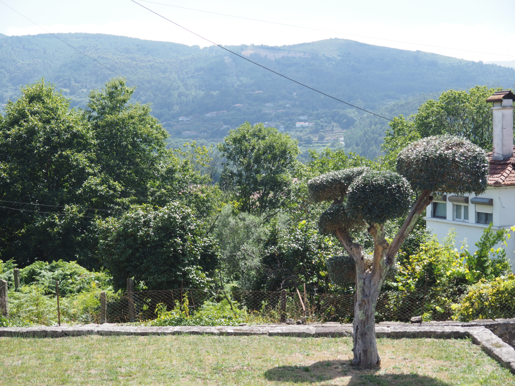 So, we follow the red and yellow signed circular trail around Covas. We walk under huge ancient oak trees, cork oak and Portuguese laurel. Willows and poplars line the Coura River.
