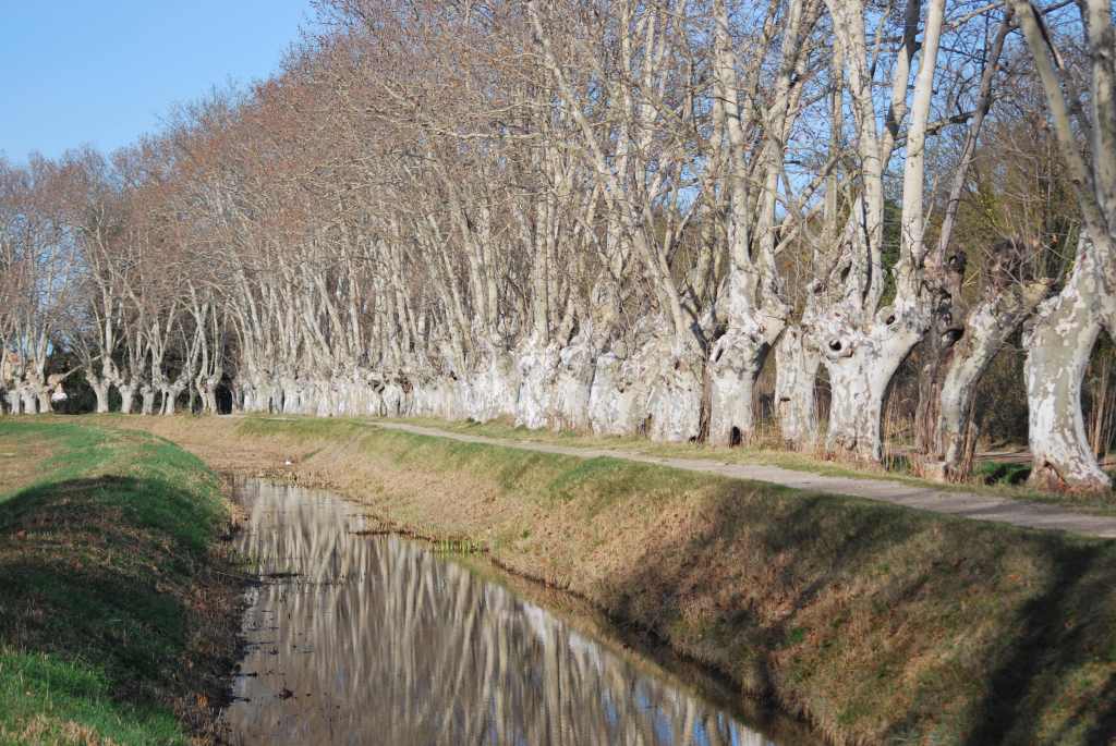 We cycle to Maison de la Nature, on the Méjean Lagoon, its paths winding through tunnels of oak, tamarisk and bay. A man crumples a bay leaf and its citrus smell fills the air. We follow the streams through the marshland, with only a croaking frog for company, to a sweep of artistically pollarded plane trees, their bare branches silver in the sunlight.