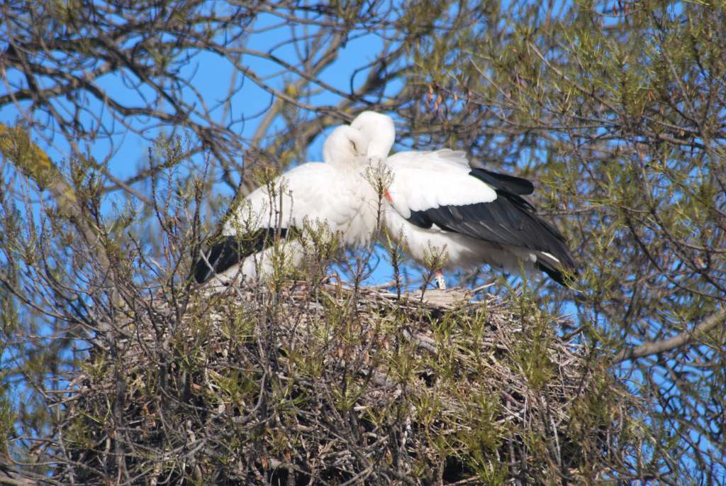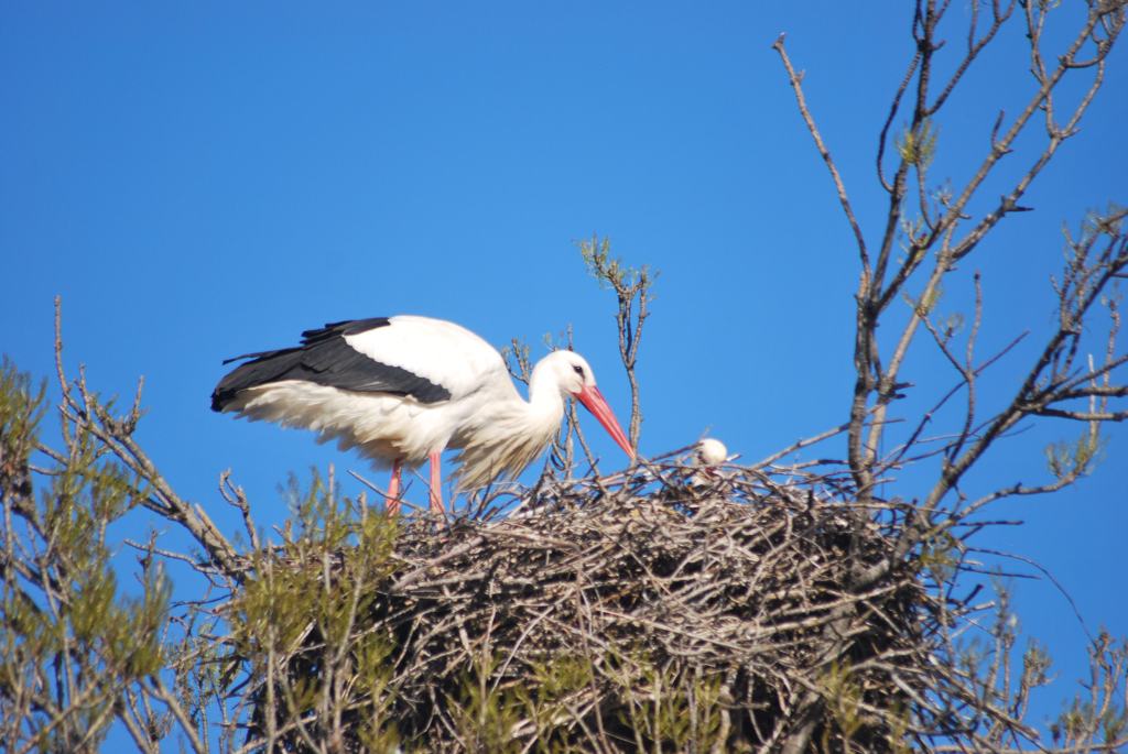 Storks sit in their messy nests up high in the ash trees, gazing down at us. One shoves a twig from her nest down onto her neighbour below.