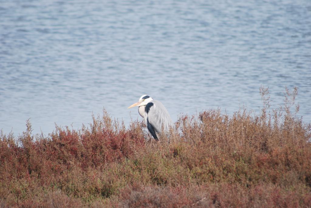 A grumpy heron hunches into itself, refusing to move, a Camargue pony munches wild grasses beside the lagoon.