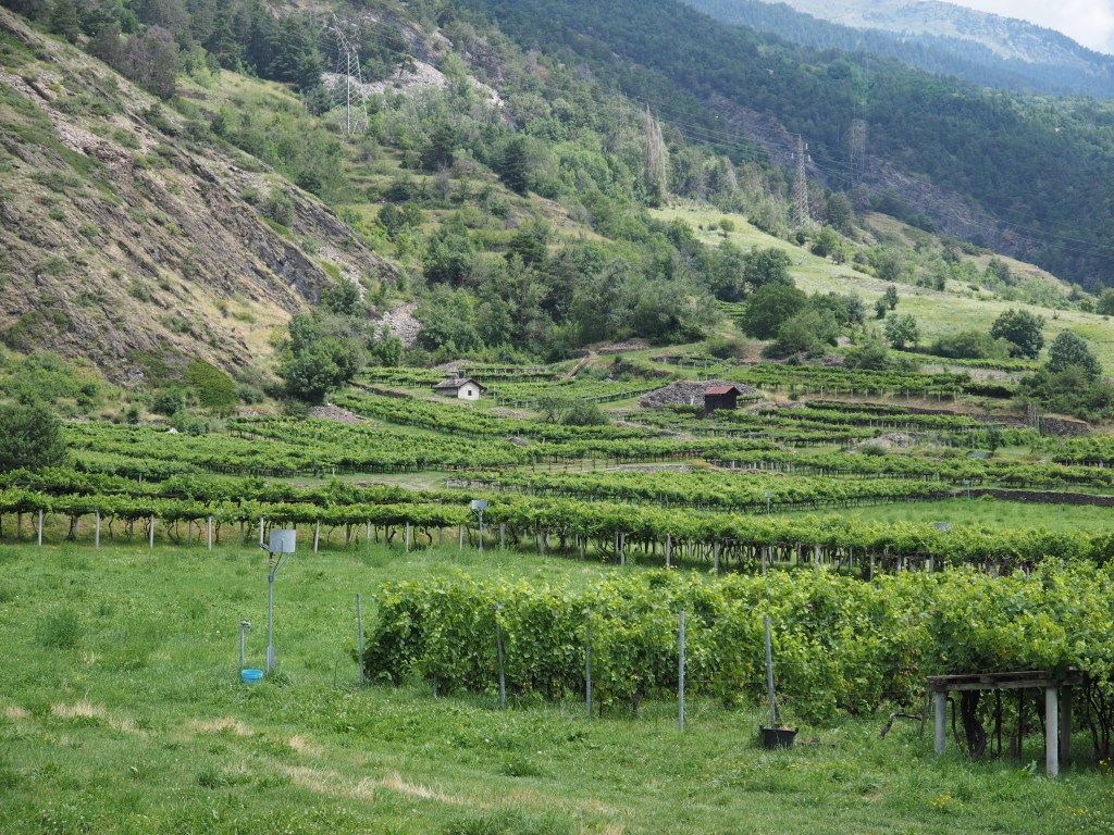 The path opens out onto sweet smelling meadows of wildflowers and hillsides covered in the vines that are kept tall in the Aosta Valley. We end our meander eating ice-cream gazing up at the snow topped mountains at the head of the valley.