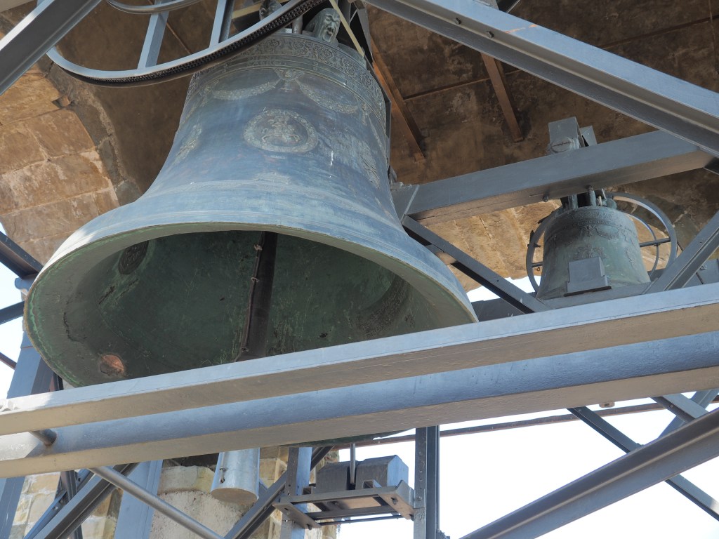 Underneath the giant bells we look out over the lower town, the plain below lost in mist, and over the pantile roofs and spires to the mountains.
