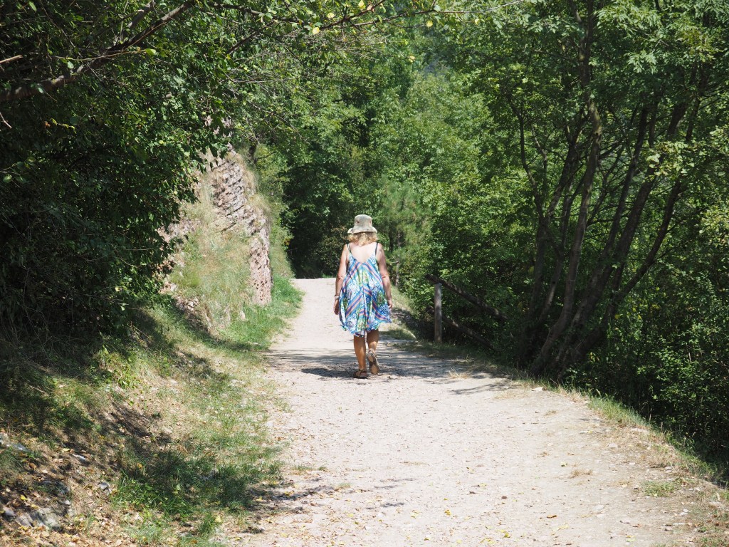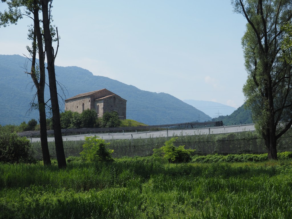 The end of the lake has been rewilded to its marshy origins – we have it all to ourselves except for the heron who seems to be following us around it. On the opposite bank sits the humble chapel of San Panteleone, built in honour of the saint who apparently protected the residents from maladies caused by the lake’s once fetid waters. Today’s meadows and orchards seem a long way from disease ridden marshland.