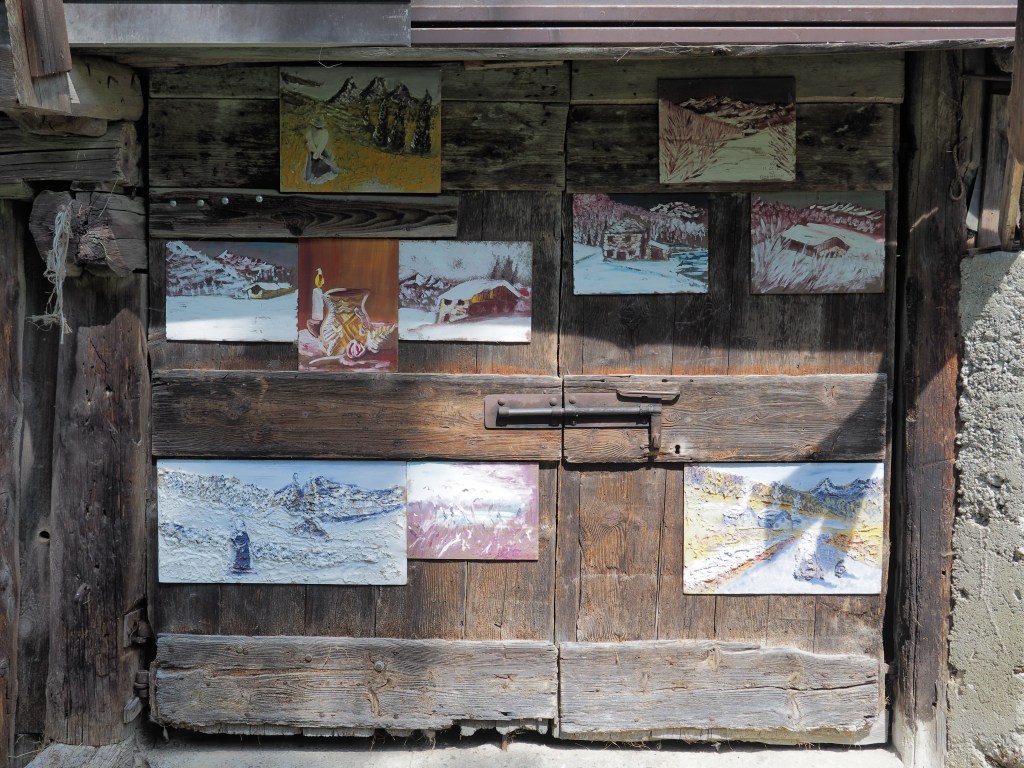 There’s a wonderful stone house with wooden cartwheel on its front and a collection of paintings on its barn doors.