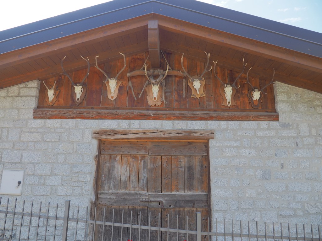 We ramble by a local albergo, with a fine collection of ancient tools hanging outside and so many different stag heads.