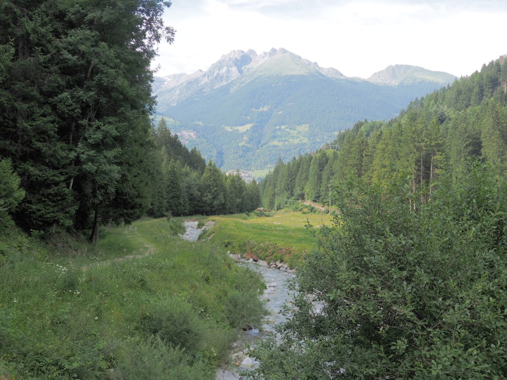 We pick up a book of walking trails and cycle routes. There’s so many to choose from. Our first foray is along the rushing river Oglio’ tributary, up the valley, across the wooden bridge and down the other side through forests and riverbank, with locals paddling in the basins in the rock and horse-riders making their stately way up the valley towards the high peaks. Even though Spring is long-gone, the purple loosestrife, wild chicory and carrot are still rampant.