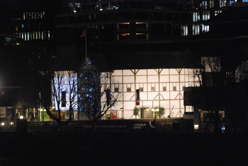 We walk across Hungerford Bridge to St Paul’s dome and London Bridge lighting up the skyline, not to talk of the Shard with its disco lights, the OXO tower in red, fairy lights strung out along the bank and in the trees. It’s as if we’re walking through a Romcom movie set.