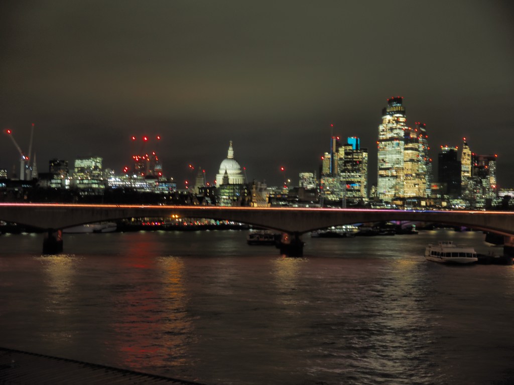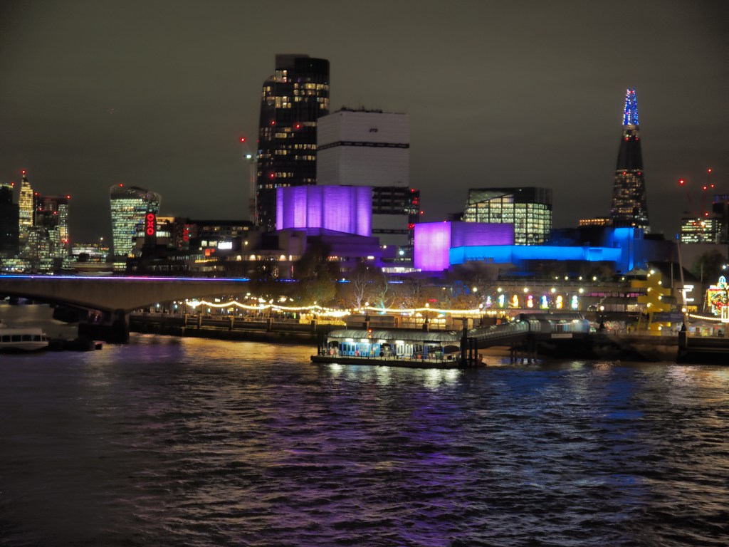 From Little Venice’s watery world we’re disloyal to the Elizabeth Line and shoot along to the Embankment on the Bakerloo’s old rattle and shake. It’s that time of winter evening, too late for museums, too early for libations of the alcoholic kind, so it’s non-negotiable, the buzz of the Southbank is the place to be, with its iconic food vans, lights, and sheer showbiz quality.