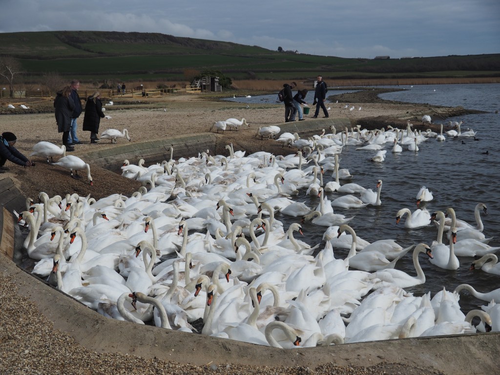 You can’t talk about the swannery without mention of the wonderful light and the visual feast of the blue lagoon, honey coloured shingle spit, wheaten reeds, thatched hide roofs, all backed by green hills. It makes you want to whip the watercolours out and catch it on canvas – hardly likely in my case! Chesil beach itself, formed over thousands of years, humbles us, reminding us that humans have only walked this earth for a tiny timespan.