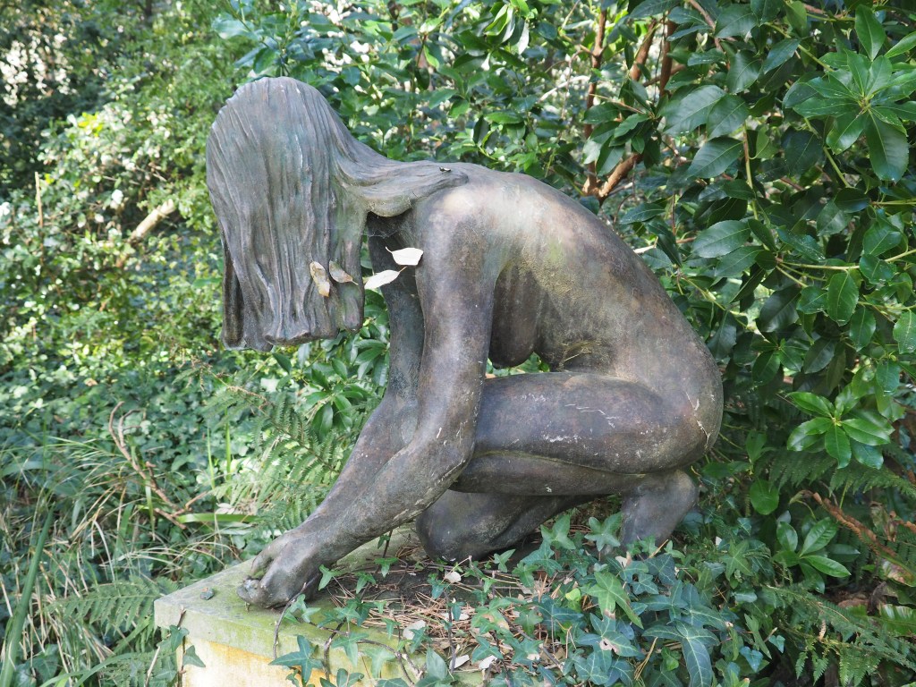 Sculptures add to the surprise element in gardens, but I have to ask why so often they have to be of nude women. Here, the bronze nudes stretch, lie around, crouch down like sprites among the trees. Effective, “But why only female?” No answer from Seán– he’s used to me proclaiming from my soapbox.