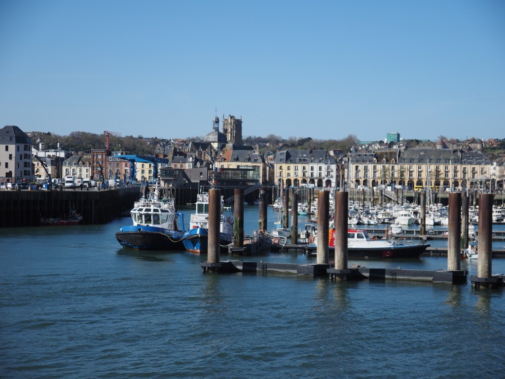 The plan is to bomb through France to Catalonia for our Spring tour. The minute we park up in Dieppe at Aire Camping-car Dieppe, there’s the usual magic, with the lights from the narrow restaurants reflected in the port’s waters, the masts of the sailing boats, the ghostly chalk cliffs, and Notre-Dame de Bonsecours looking out for her lost sailors perched on the clifftop.