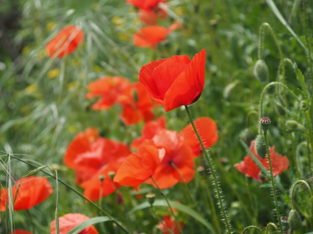 The field edges are dotted with poppies and the appropriately named star-of-Bethlehem.