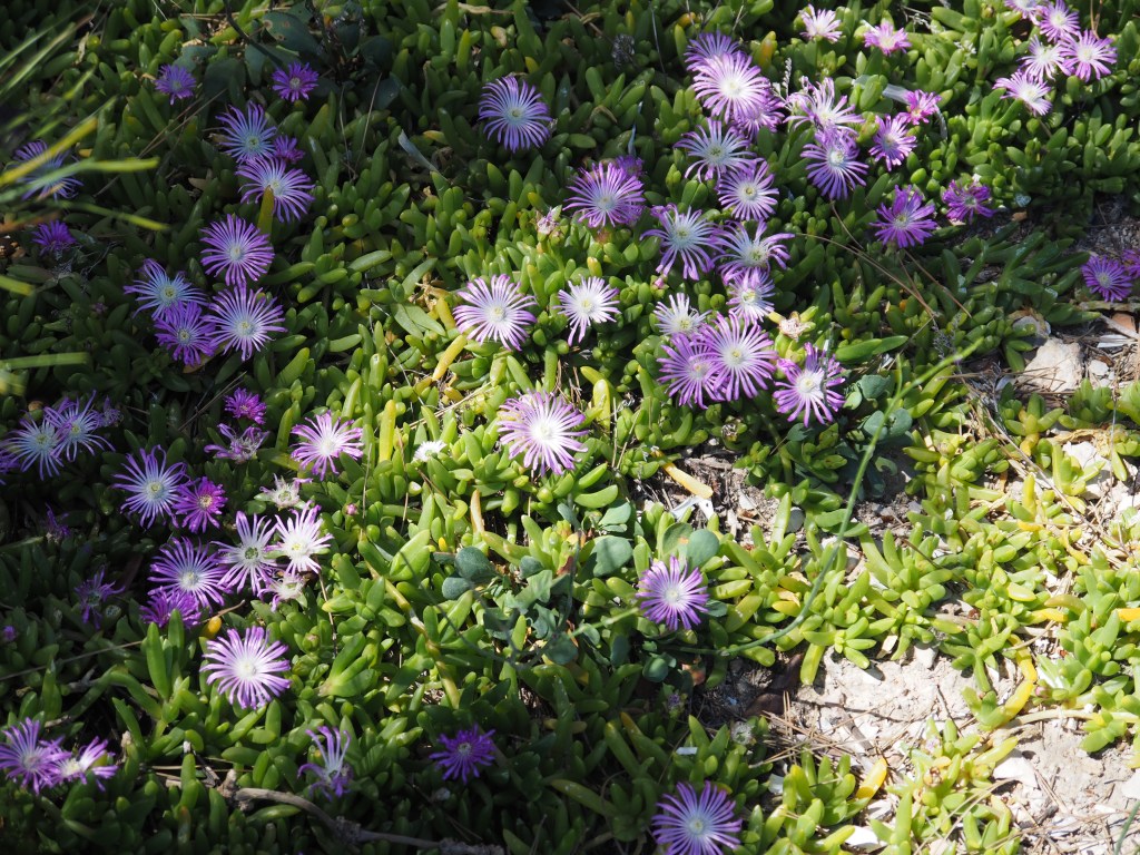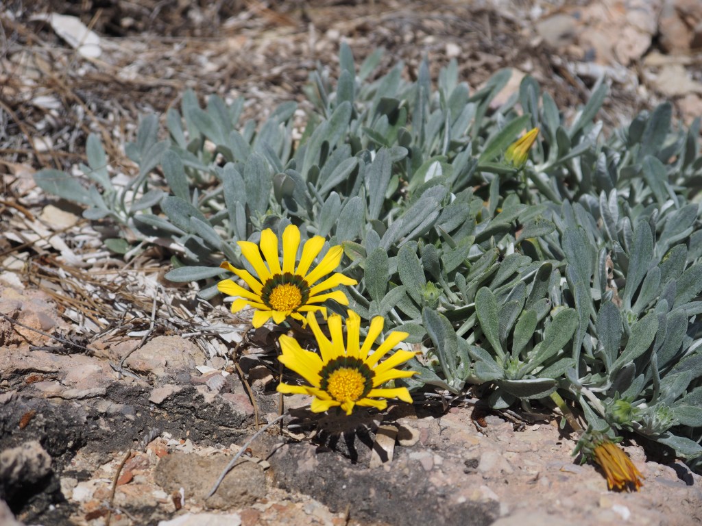 I love some of the common names for plants, Seán being one for technical accuracy, likes the Latin ones. How could you not love Golden Fleece, the name of the yellow daisy-like flowers, or rock rose, instead of cistus? We agree to differ. But both of us love the sunshine gazanias that suddenly line the path.