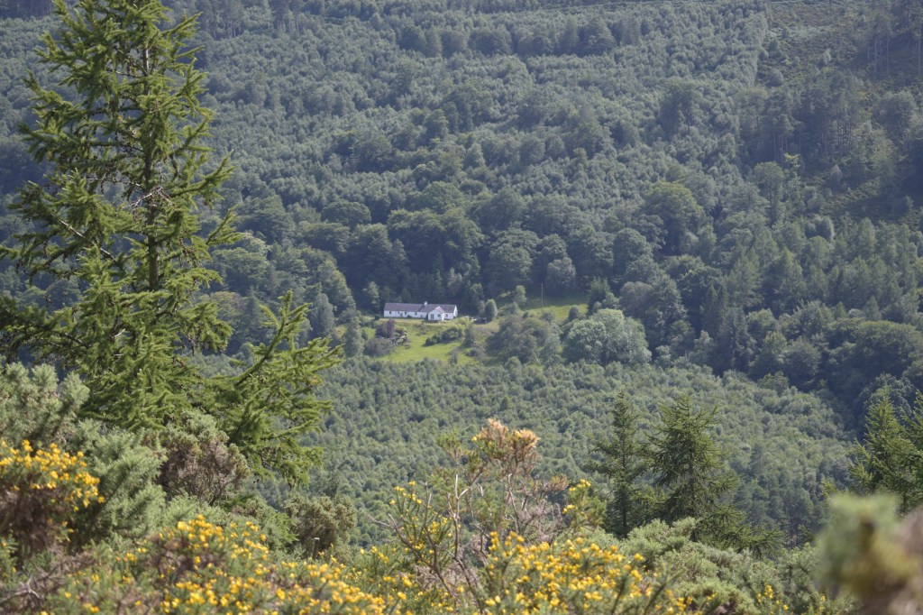The first view of the morning is the stone arched bridge at Glenmalure and the house martins swooping through the air; the first sound the rushing Avonbeg river. The plan today is to walk 7 miles from Glenmalure to Glendalough, along the Wicklow Way and Miners’ Way.