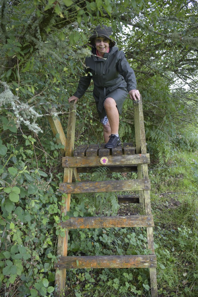 The walk turns off over an almost perpendicular, wooden stile, which very much resembles a rickety ladder.