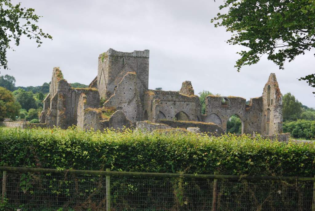 Then, we nosey along in our home on wheels to Cashel. I’m pleased to be camping my own clan’s small site, which sits beside their farm. O’Brien’s Campsite is opposite an imposing monastic ruin, Hore Abbey. I wander around it when the sun makes brief appearances in between wind blowing me off my feet and rain pelting me.