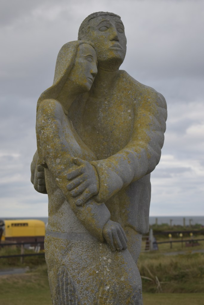 The sculpture of a man and woman, clasped together, with the tails of merpeople tails is arresting.