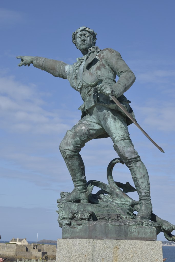 The bronze of Robert Surcouf points out to sea with intention, a privateer, who enjoyed raiding British, Portuguese and American ships in the Indian Ocean. Unfortunately, as with many buccaneers from 18th and 19th Century he also had a murky history involving the slave trade.
