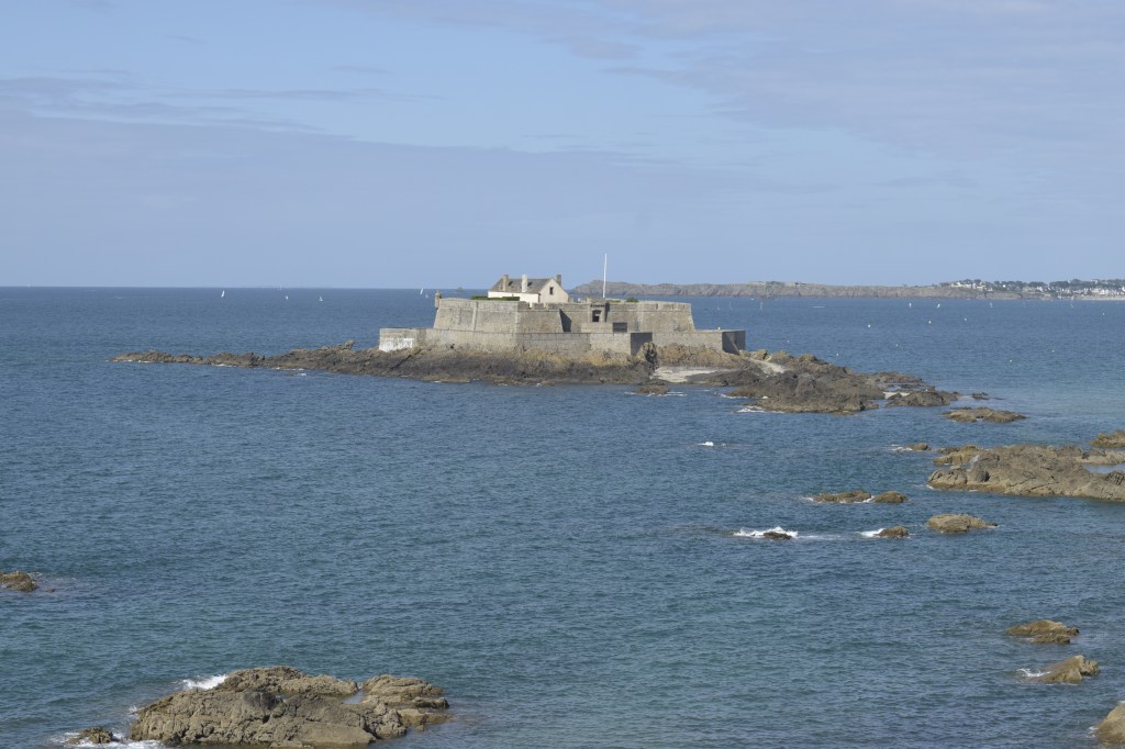 We leave the ramparted island of St. Malo for supper as it’s so crowded, find a gem of a place, a traditional restaurant, with the landlady holding sway. The menu is reassuringly small, two choices for each course and our fresh salmon salad and paprika pork are delicious. We love the landlady too, who almost refuses to sell a brandy to a tourist to accompany his meal, as she insists it’s a digestif and not at all appropriate.