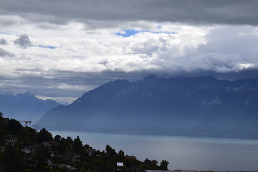 Our journey through Switzerland becomes dramatic as we reach Lake Geneva, the west side of it swallowed up by bruised clouds, the east side sun-silvered. Majestic crags loom so you can really see how Mary Shelley invented Frankenstein’s monster when confined to the Villa Diodati in 1816, a year of a cold, dark summer caused by an eruption of Mount Tambora in Indonesia.