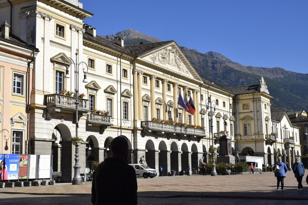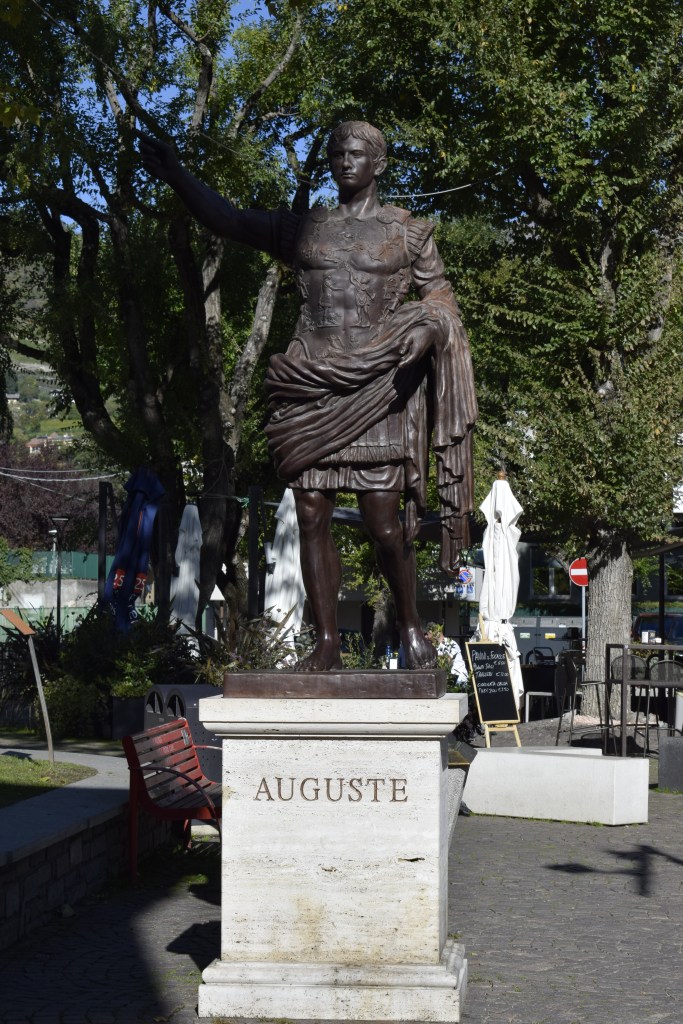 The snow-topped Alps crowd in as we wind up to the Gran St. Bernardo tunnel. Pulling up in the camper-stop in Aosta, we’re metres away from the historic centre, and Augustus Caesar’s arch and statue.