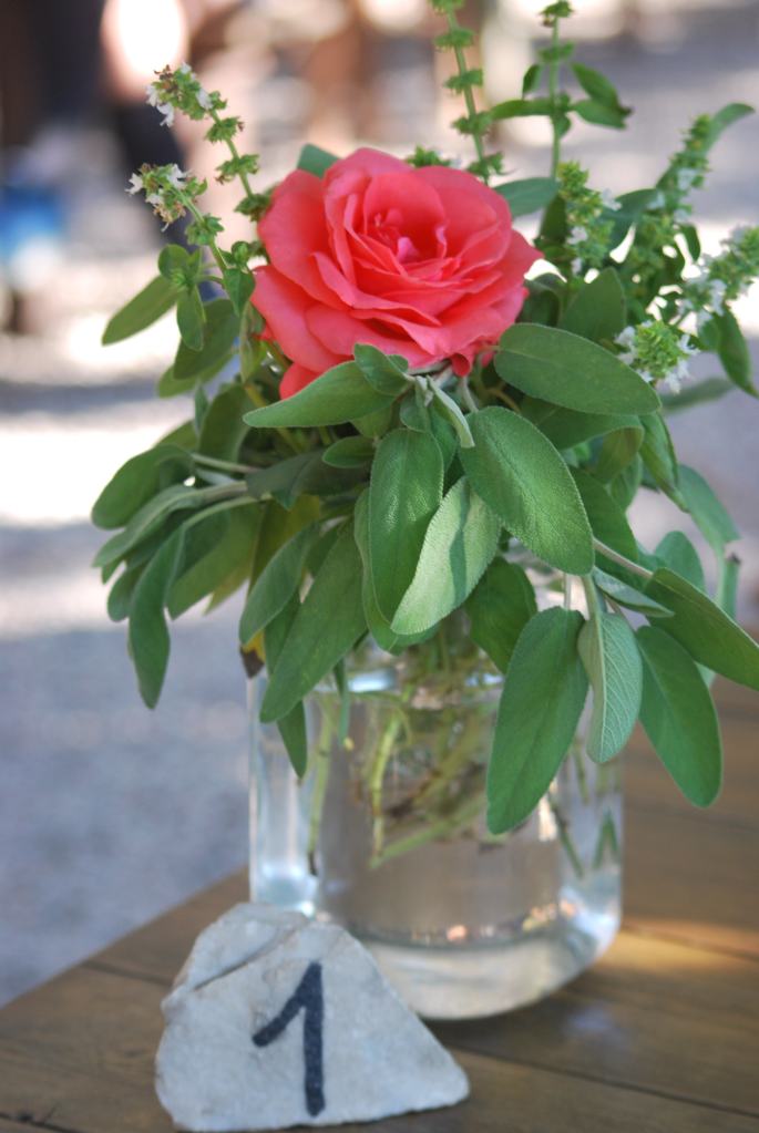 The roses on each table sit in old olive jars with sage and basil as greenery. But Himself is not up for moving the van from Camping Lacona Pineta, as it’s footsteps away from the beach.