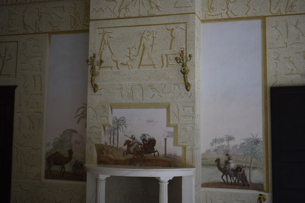 Stone eagles adorn walls, balustrades, reminding us of Napoleon’s aspirations to replicate the Roman Empire. But the inside of the house is surprisingly delicate. The frescoed rooms, gentle, except for the depiction of the Egyptian campaign.