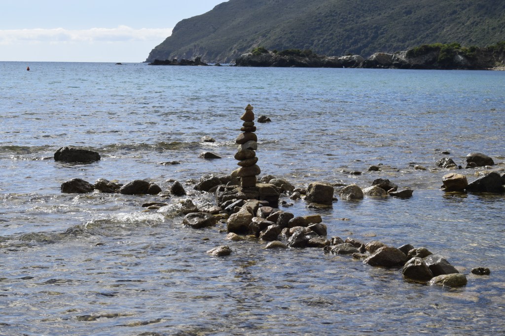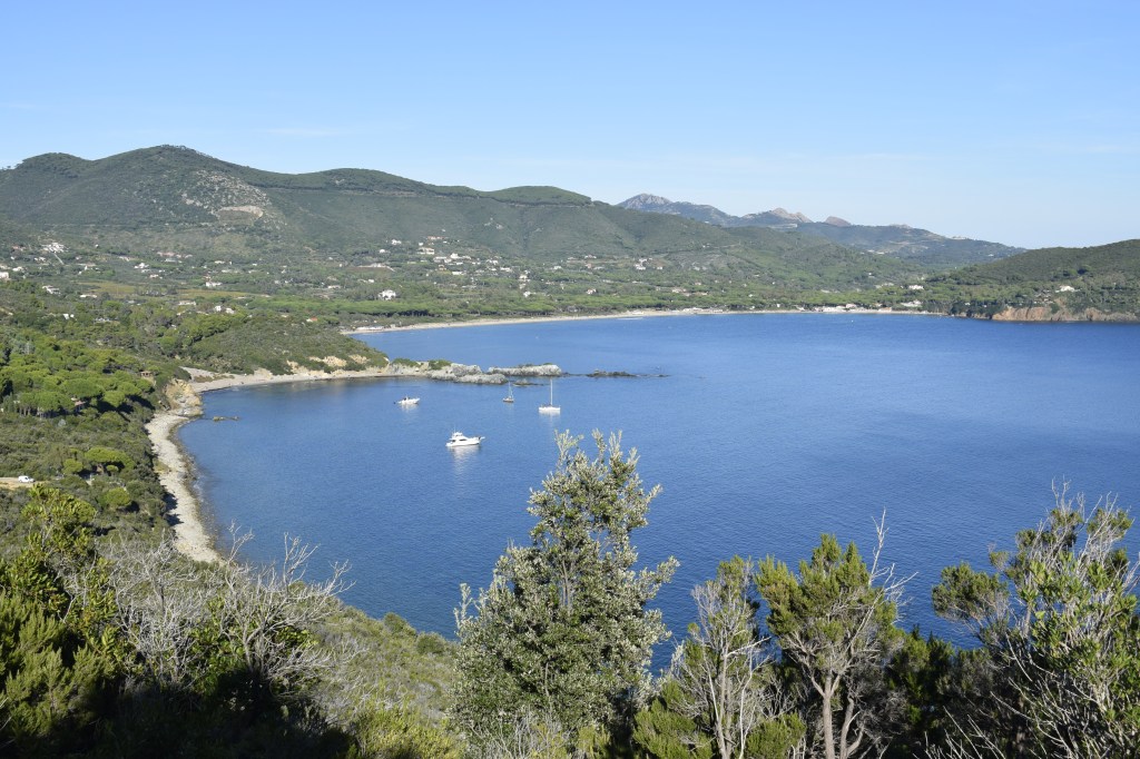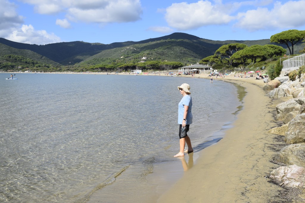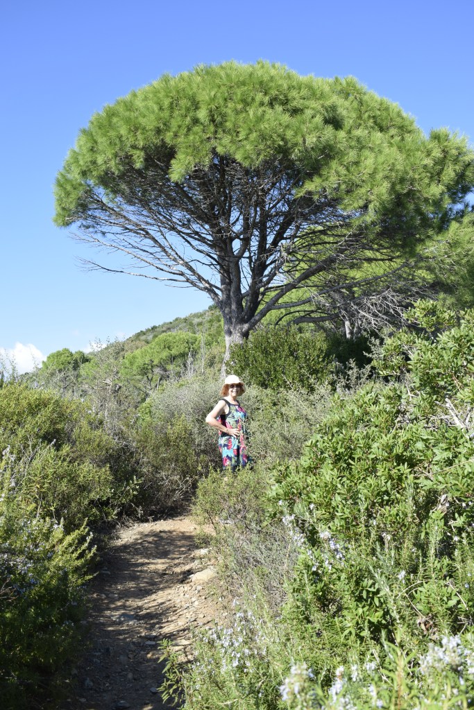 Afternoons see us hiking on one of the trails, Seán armed with his map App, Avenza. The trail from just beside the campsite to Capo Stella starts out shaded, under umbrella pines, with views to the Golfo Stella and the town of Capoliveri clinging to the cliffside opposite, the sailing boats idling in the bay.