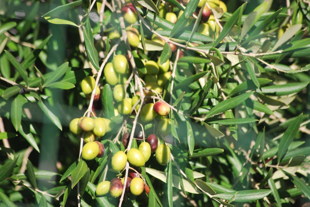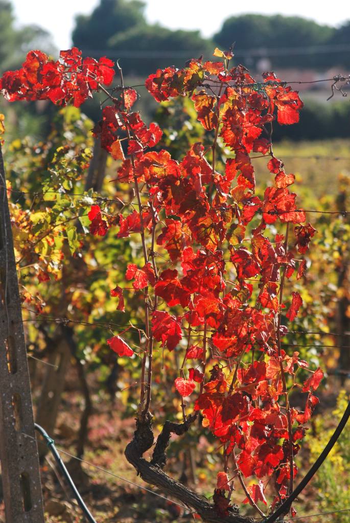 Autumn’s scarlet vines and silvered leafed groves ripple down to the blue sea.