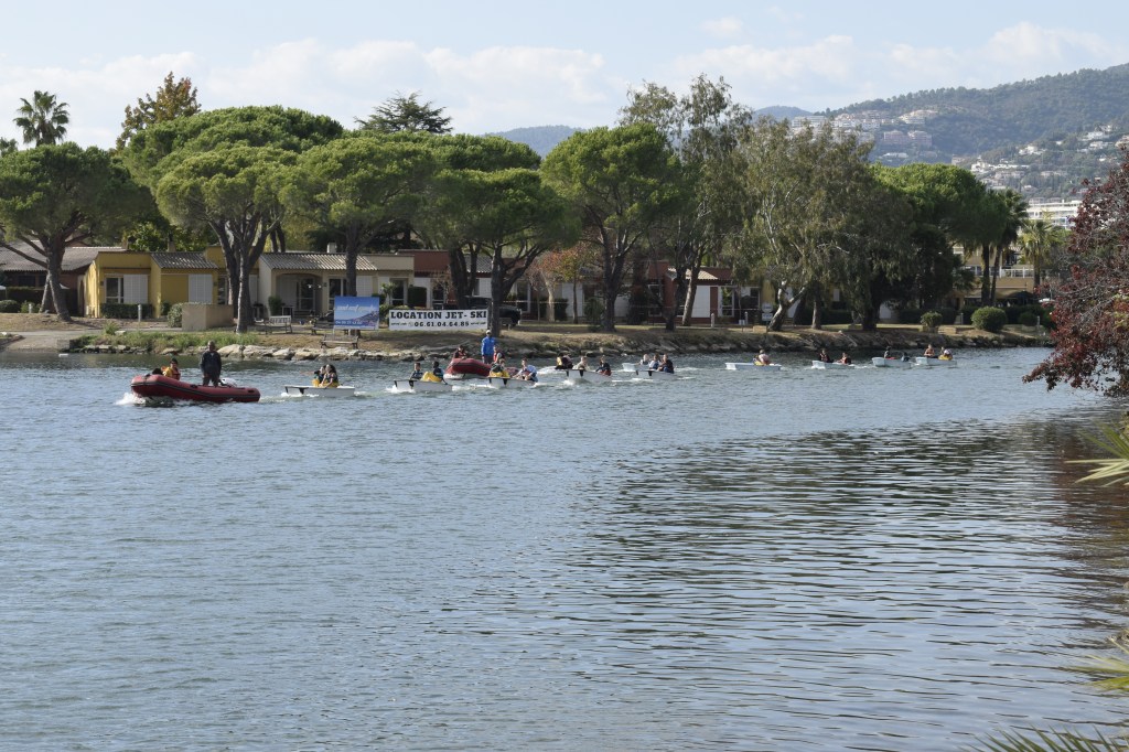 We stroll along the Parc des Oliviers which lines the River de L’Argentiere, watching the kayakers and children in little boats being towed to sea by a speedboat as if they’re a string of little ducklings.