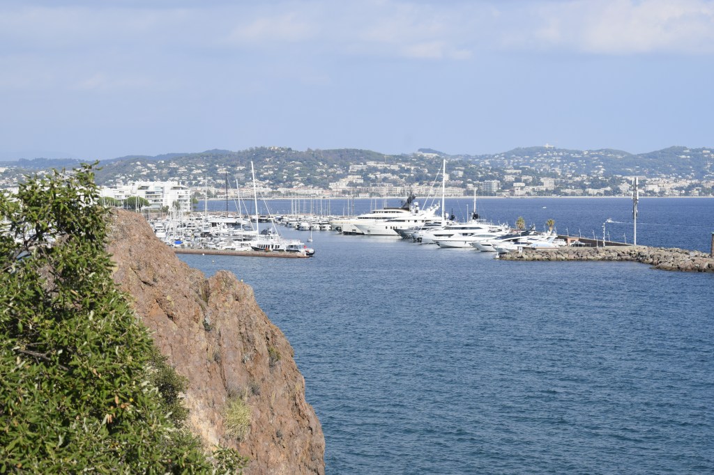 Bars by the river are full of early evening imbibers. When we hit the Mediterranean, we spot Cannes in the distance, and the Iles des Lérins.
