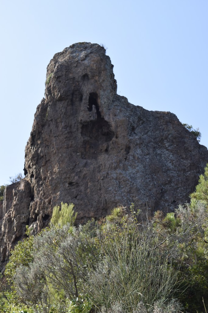 We follow the track climbing up onto the Esterel Corniche, and we breathe in the scent of hot pine and rosemary, marvelling at the russet rocks carved by wind, sun, and rain into mythic beasts. We clamber up and down into little rocky coves.