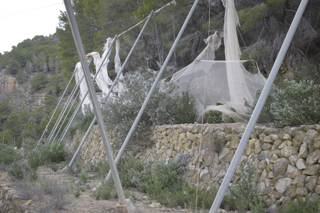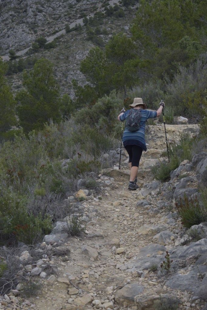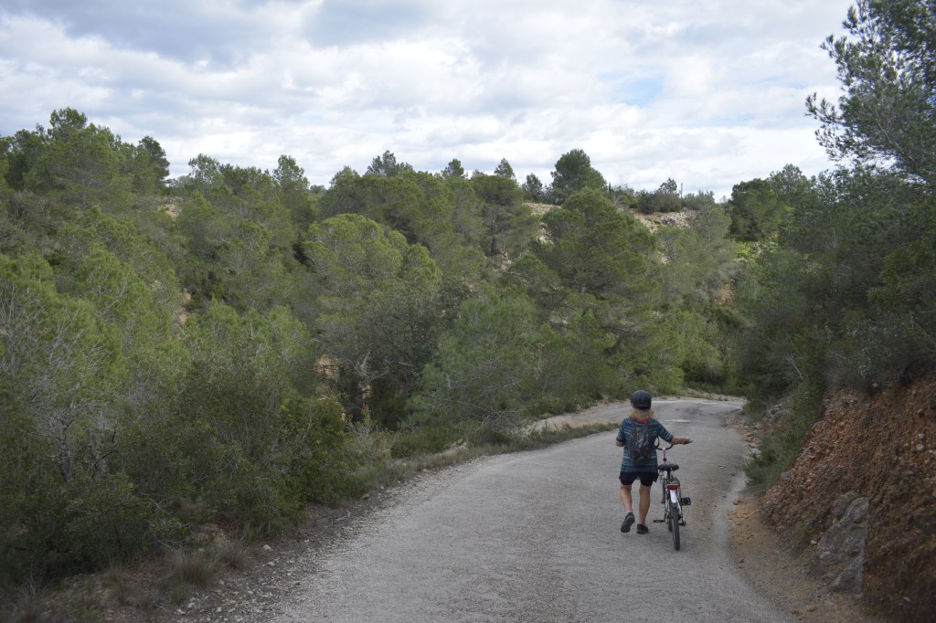 We follow a walking trail up a mountain, hoping to cross the pass to Medieval Fort de Bèrnia, which for centuries protected the area from pirates. The pass was also walked by villagers setting out to other villages’ fiestas; by farmers taking their livestock to summer mountain pastures; and it was a market route for this raisin growing area.